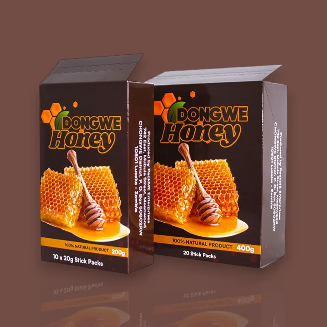 Honey is a consumable product, so safety standards are non-negotiable. Custom honey stick boxes are produced using food-grade materials and inks suitable for food packaging.